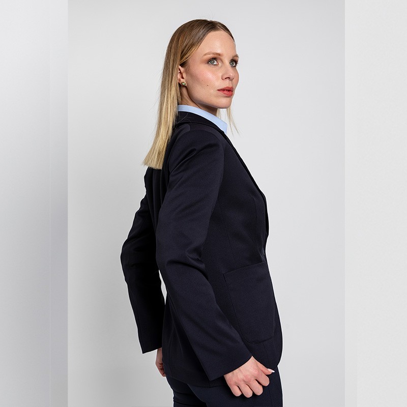 entdecken sie die elastische und flexible anzugjacke für damen aus der urban elastic&flexible-kollektion, die für frauen konzipiert ist, die stil und komfort suchen. Diese elegante kleidung ist sehr leicht zu tragen, teilweise gefüttert für ein leichteres gefühl, was einen pluspunkt an komfort und bewegungsfreiheit bietet. Ihr modernes und elegantes design macht sie perfekt für professionelle oder formelle anlässe. Sie kombiniert sich ideal mit der hose ref. 413e, um ein perfektes kostüm zu bilden.
