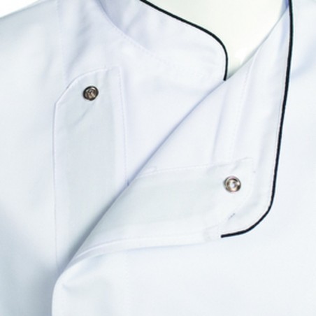 Discover this women's cook's jacket, braised model, which combines style and functionality in the kitchen. Its printed back and breathable technical fabric make it ideal for professionals seeking comfort and elegance in their uniform.