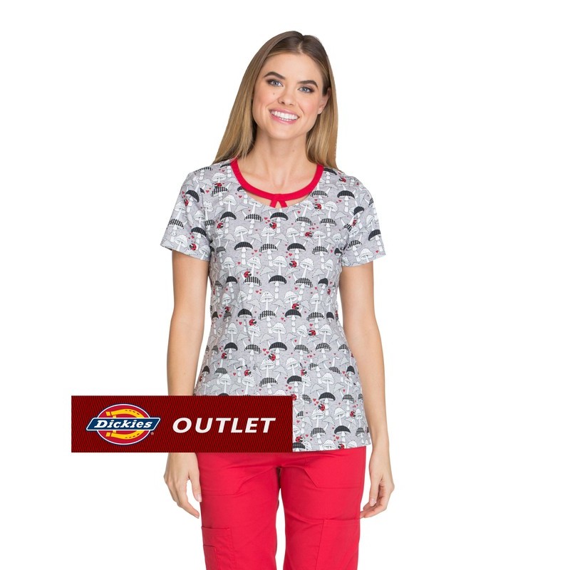 discover the dickies medical lady's jacket, an elegant design with round neck and contrast printed. A medical uniform with style and professionalism.