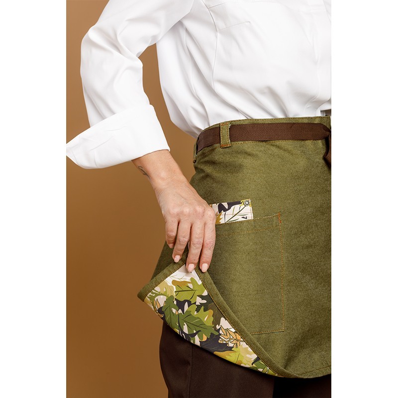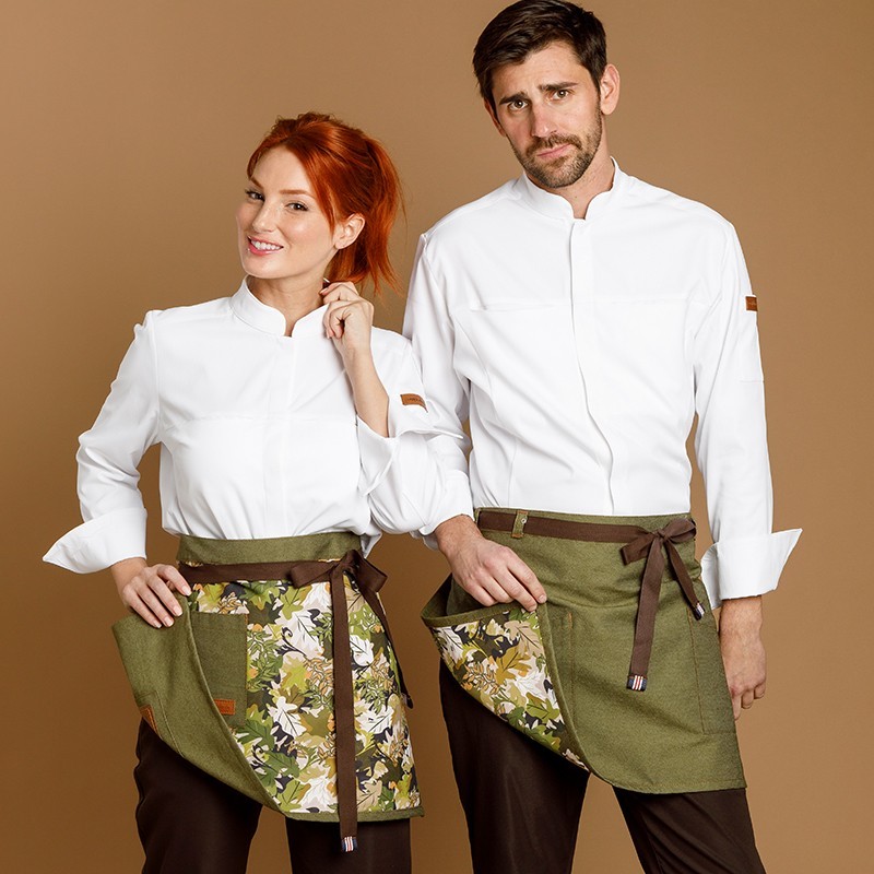 this reversible kitchen apron adds a touch of style and originality to your uniform. With a unique floral print, it's perfect for any occasion. Its elegant and durable design makes it an excellent choice for hospitality professionals looking for a practical, comfortable accessory with a personal touch.