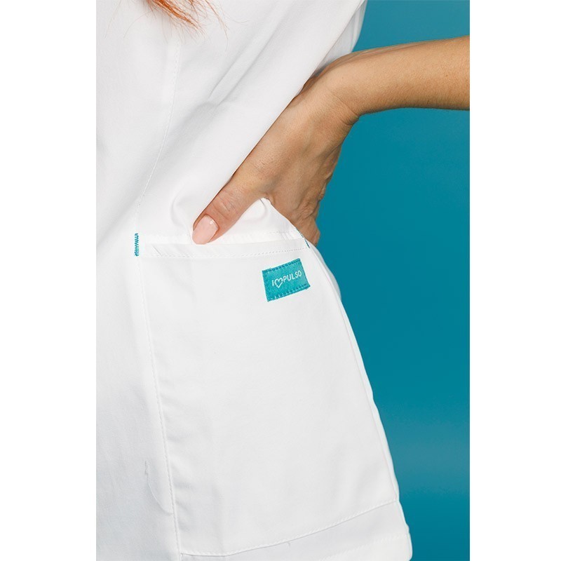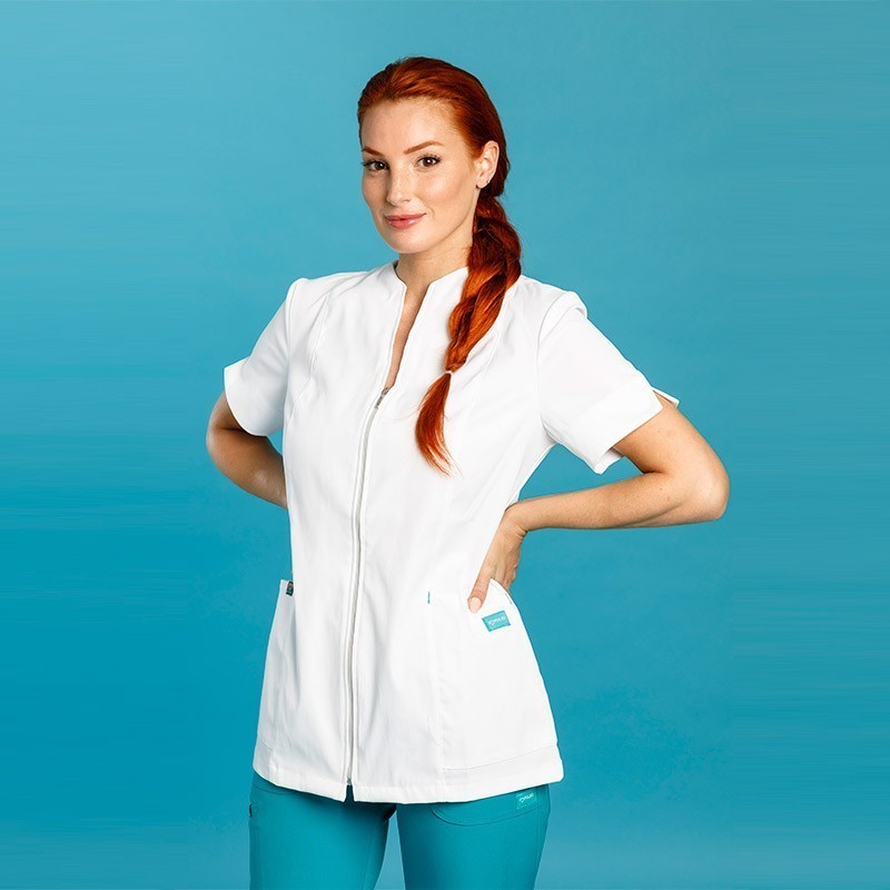 discover the perfect combination of style and functionality with this sanitary jacket. Its elastic and soft microfibre provides comfort and protection, while its short-sleeved design, zip fastening, and swan-neck collar make it the ideal coat for pharmacies, opticians, clinics, spas, and the cosmetics industry.