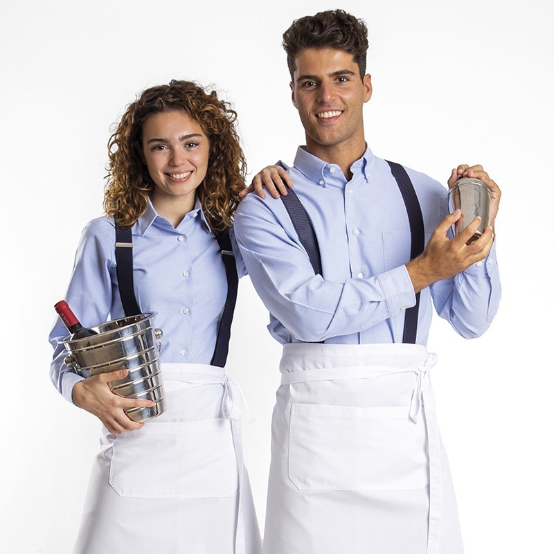 la camisa oxford ideal para profesionales del sector horeca y camareros que buscan combinar estilo y comodidad. Su corte clásico y diseño elegante la convierten en un básico imprescindible en cualquier uniforme, perfecto para ofrecer un servicio impecable con estilo.