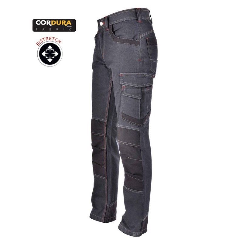 el pantalón tucson model trousers es un pantalón multibolsillos bicolor con refuerzos en cordura que ofrece una combinación perfecta de durabilidad y estilo. Su diseño con costura y presillas en contraste rojo le dan un toque distintivo. Fabricado con un gramaje denim de 11 onzas, garantiza comodidad y resistencia.