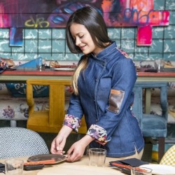 Découvrez cette veste de femme en véritable denim élastique, idéale pour les professionnels de l'hôtellerie et de la restauration qui recherchent style et qualité. Son design cintré et dos respirant en tissu stretch noir la rendent très polyvalente et confortable. Parfaite pour donner une touche...