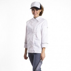 Découvrez la veste de cuisine femme modèle Crème, conçue pour offrir confort et fonctionnalité. Elle est légère, élastique et dispose d'un dos respirant pour un plus grand confort pendant vos journées de travail.