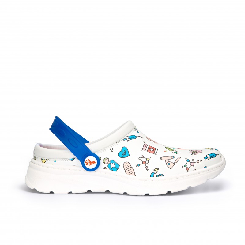 découvrez la chaussure de travail originale et confortable de la marque dian, conçue avec un dessin unique et une sangle arrière rabattable pour un ajustement parfait. Cette chaussure est idéale pour les infirmières, les médecins, les pharmaciens, les professionnels de l'hôtellerie, les chefs et les cuisiniers qui recherchent le confort et la protection dans leur travail quotidien.