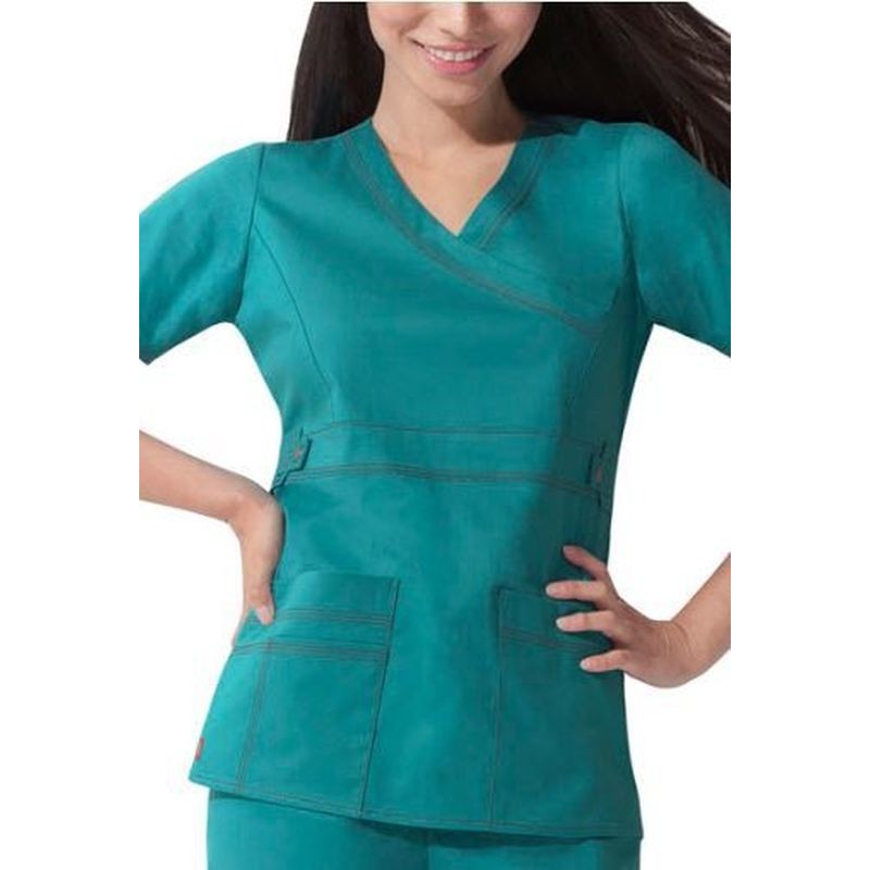 découvrez la veste dickies medical femme, conçue avec un col en v croisé et une coupe ajustée qui met en valeur votre silhouette. Un classique renouvelé pour un look professionnel et élégant.