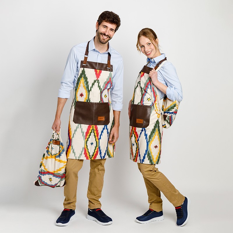 ce tablier avec dessins style langues majorquines est un vêtement très coloré, pratique et moderne, idéal pour ceux qui cherchent une touche de personnalité dans leur uniforme. Son design original en fait une excellente option pour les professionnels de l'hôtellerie qui cherchent un tablier élégant et fonctionnel. Il se distingue par son engagement envers le design zéro déchet zéro résidu, ce qui en fait un tablier original et durable.