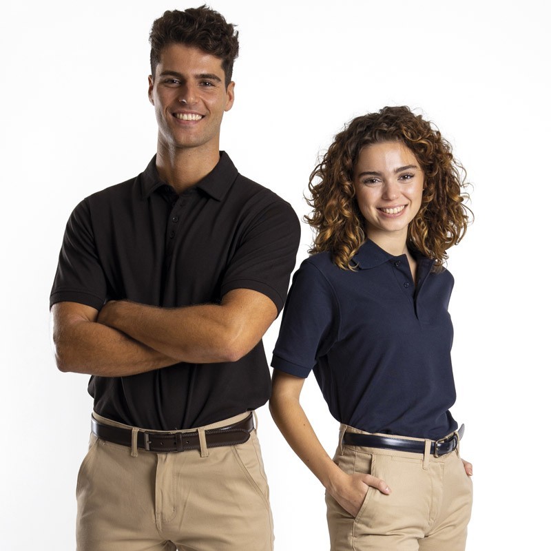 esta camiseta de vestir unisex com acabamento antibacteriano é ideal para aqueles que procuram conforto e estilo no seu dia a dia, seja no trabalho ou em atividades informais. O seu design de manga curta e colarinho em estilo de camisa, juntamente com um corte regular fit, torna-a perfeita para profissionais da hotelaria, ambientes de limpeza, ou simplesmente para aqueles que procuram uma camisa de vestir confortável e elegante.