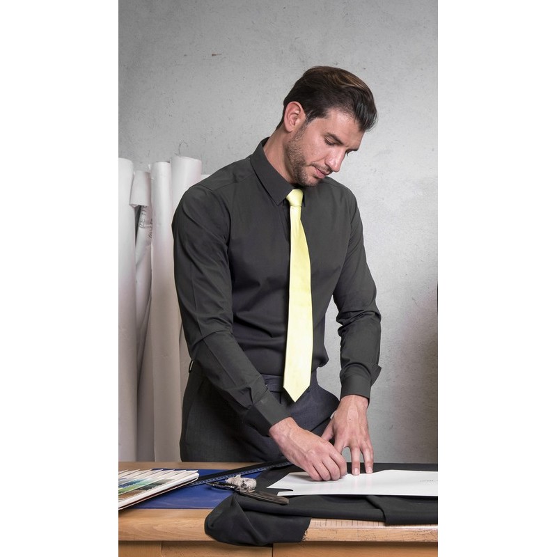 camisa elástica de manga longa com corte slim fit, ideal para um look moderno e sofisticado. O seu tecido stretch proporciona conforto e flexibilidade, tornando-a perfeita para combinar com qualquer calção. Uma opção versátil e confortável para profissionais que buscam estilo e conforto em sua vestimenta laboral.